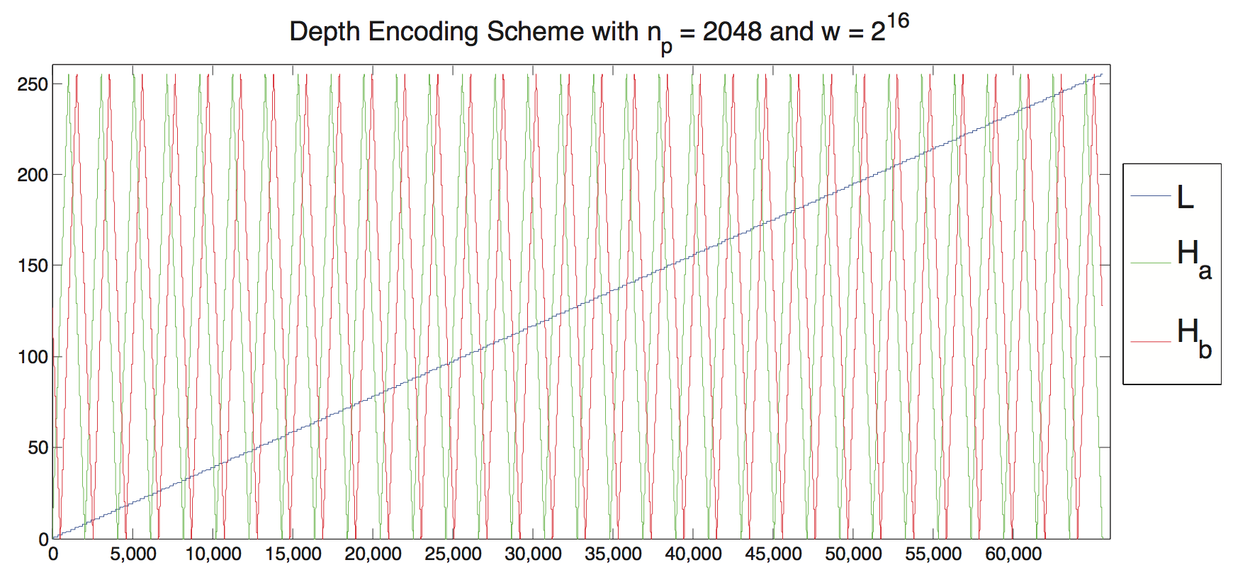 In practice this means that as an object gets closer towards you, it gets gradually more blue - and meanwhile it pulses through a sequence of red and green so you can refine the precise depth more easily. So we went and implemented this, building a 16-bit lookup-table to encode the half-precision floating point 16-bit depth measurements the camera yields into video: https://github.com/matrix-org/webrtc/compare/c3044670d87c305d8f8ee72751939e281bf5223f...0258a4ef14c11a0161f078c970c64574629761c2.