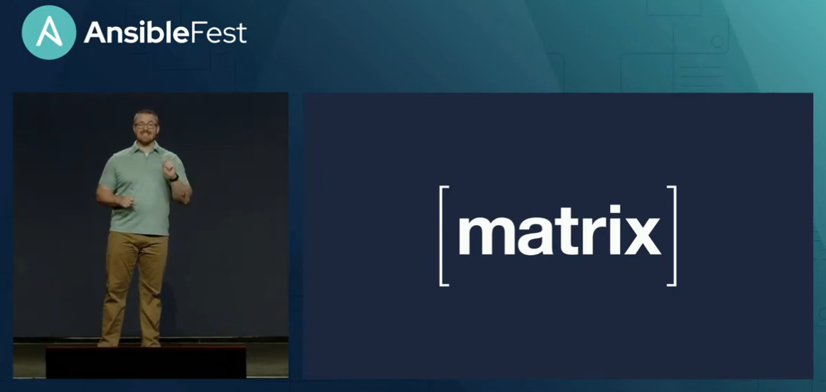 AnsibleFest 2022 happened this week, and the work the community has been doing with Matrix got quite some attention! We got a mention during the Day 1 Keynote (YouTube) and again during an interview with theCUBE.net. Both are worth watching πŸ™‚