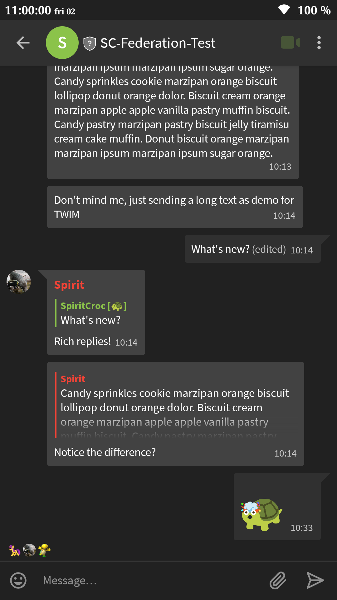 • πŸ—οΈ On the ElementX side we have been working on a Reactions picker, the timeline rewrite is almost finished, work on a split view layout for iPad continues and we’re finishing up a shiny new Room Details screen.