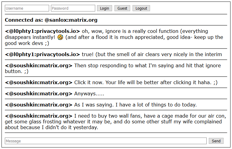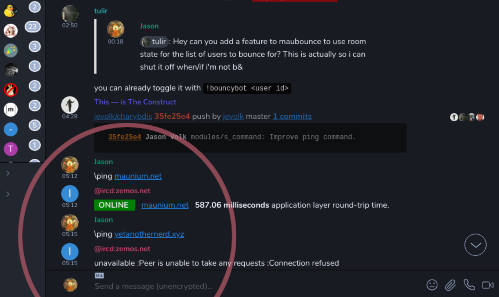 (FB)or(Hangouts)suffixes).mautrix-whatsapp's Matrix puppeting was finished (meaning typing notifs, read receipts and presence updates can now be bridged to WhatsApp) and unexpected disconnection handling was fixed (automatic reconnections should now usually work again). Backfilling needed some hacks to work with Matrix puppeting. The problem is that the real Matrix users have rate limits and can't send timestamp-massaged messages. I decided to just invite the default ghost user to the room while backfilling and make it leave afterwards so that private chat room names and such would stay intact. Some clients like Riot Android/iOS sometimes do weird things, such as moving the room out of "People", but that shouldn't be too bad.